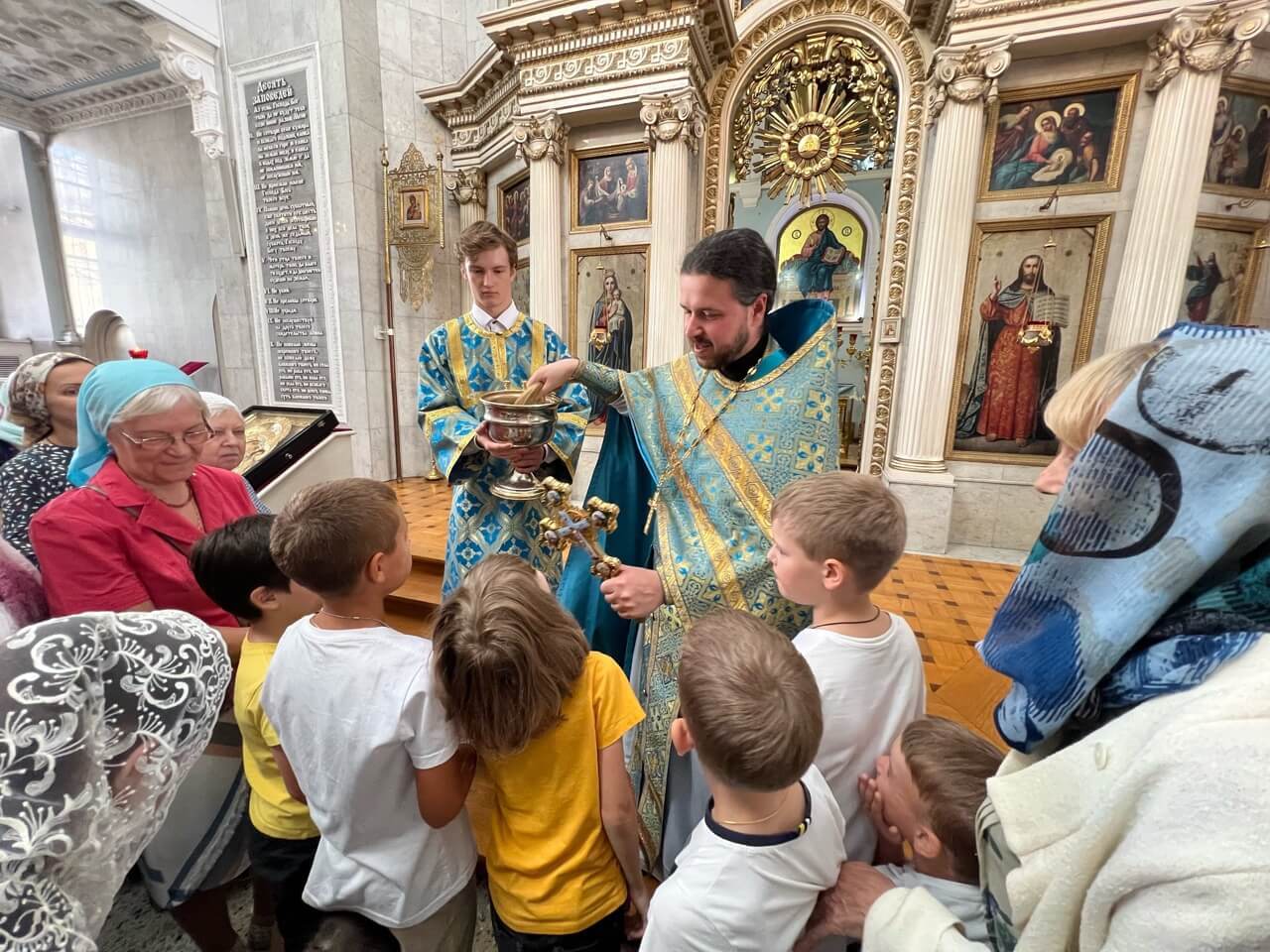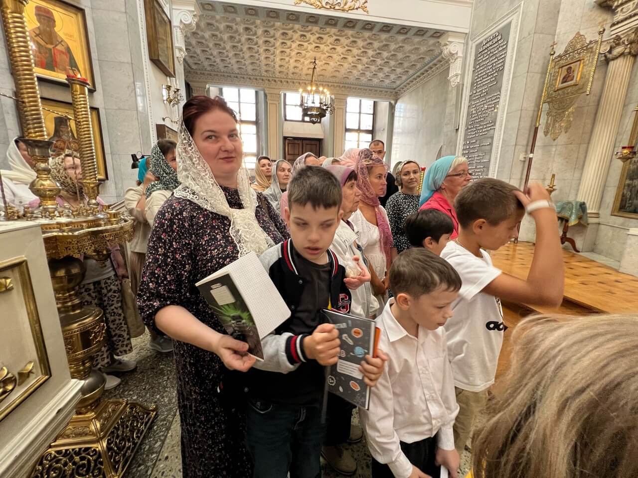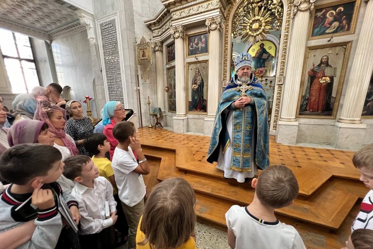 Экскурсию провёл иеромонах Нектарий Гузев, который познакомил школьников с историей и устройством православного храма, а также с его важнейшими святынями.